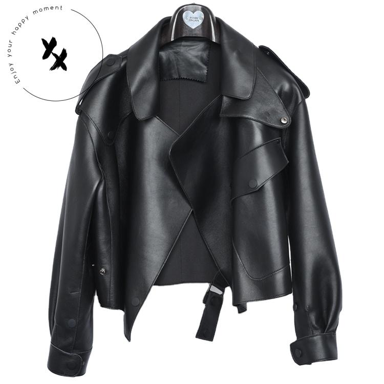 New Stylish Windproof Leather Short Outwear Real Sheepskin Womens Leather Jackets