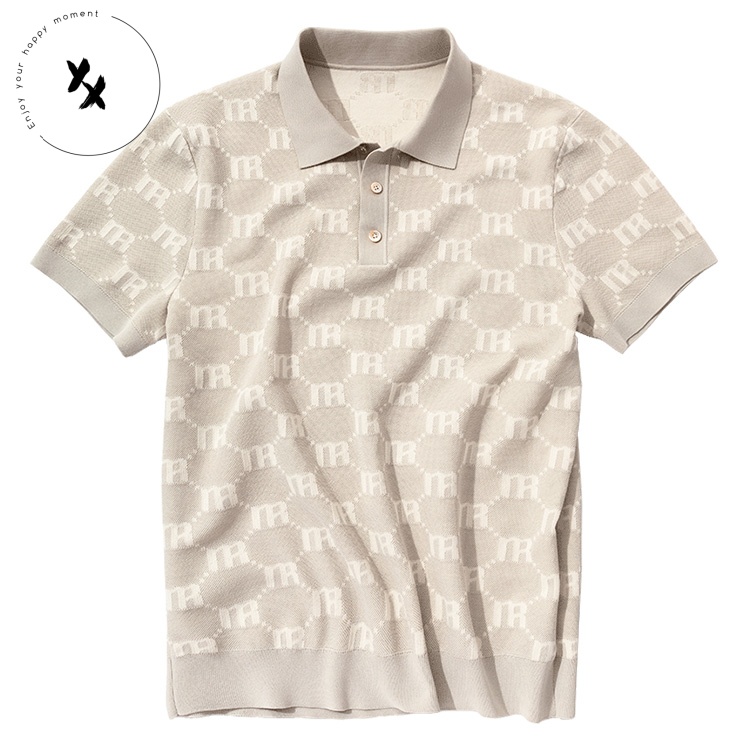 Customizable logo men's sweater, Henry collar knitted T-shirt, short sleeve, summer fine twist design, Korean style trendy loose
