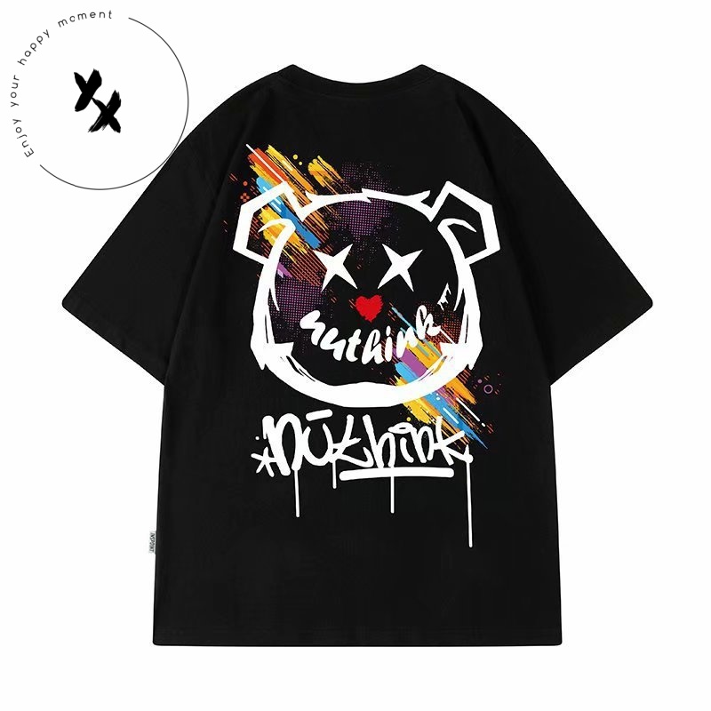 Short Sleeved T-shirt Men's Korean Version Casual Loose Street Hip-hop Round Neck Summer Outfit Couple T-shirt Teddy Bear Top