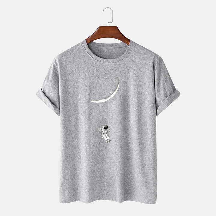 High Quality Printed Cotton T-shirt Men Casual Loose Round Neck Short Sleeve T-shirt