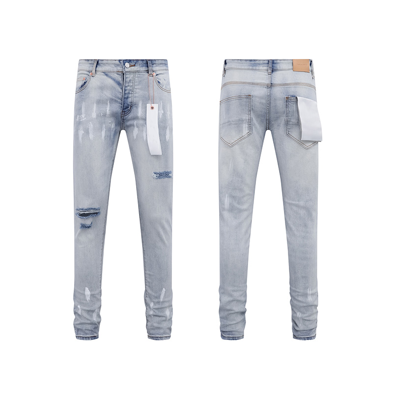 Fashion High Street Brand Men Jeans Distressed Hole Patches Repair Pants Low Rise Skinny Tassel Full Length Denim Jeans