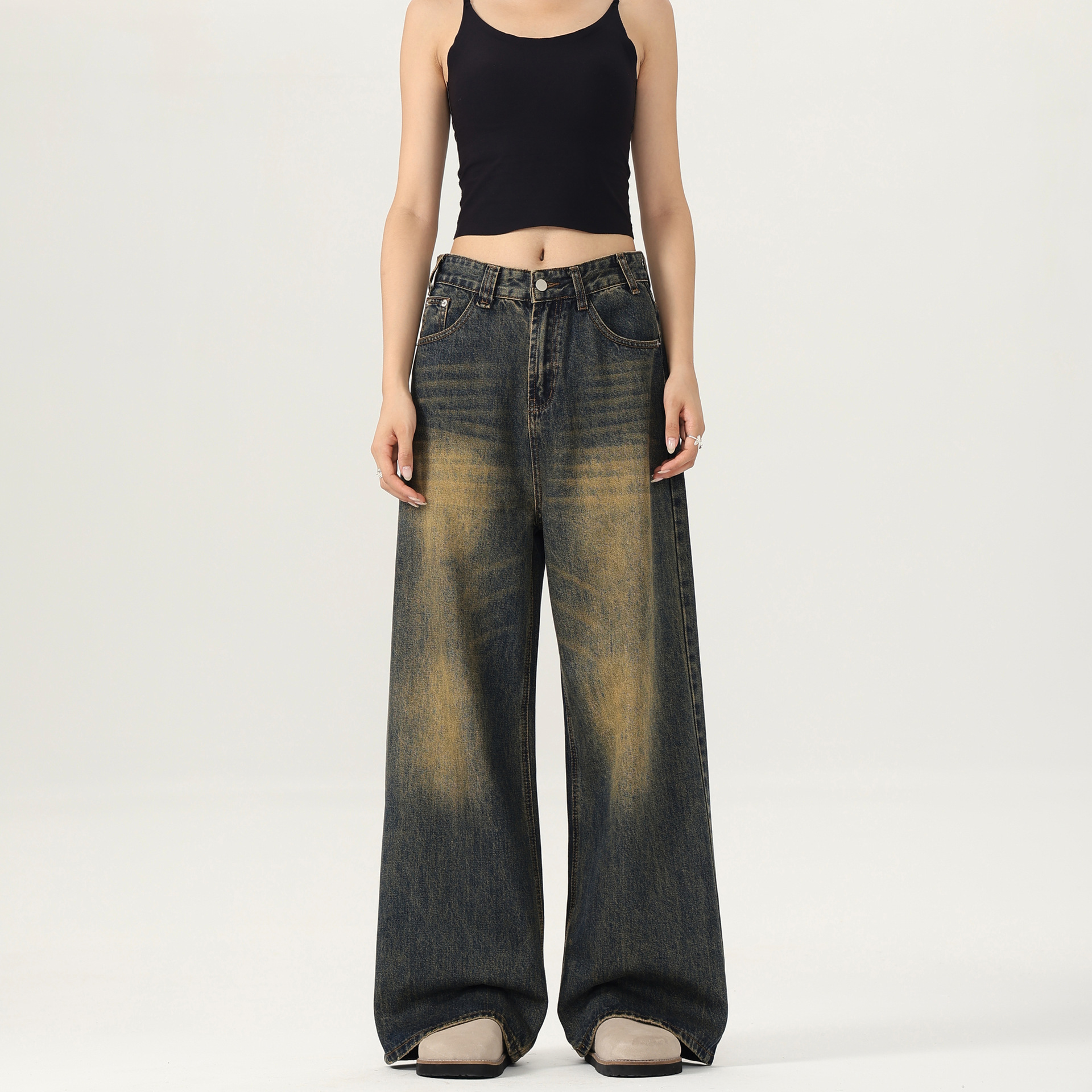 Neutral loose pants, high-quality wide-leg loose pants, street pants, and washed loose jeans
