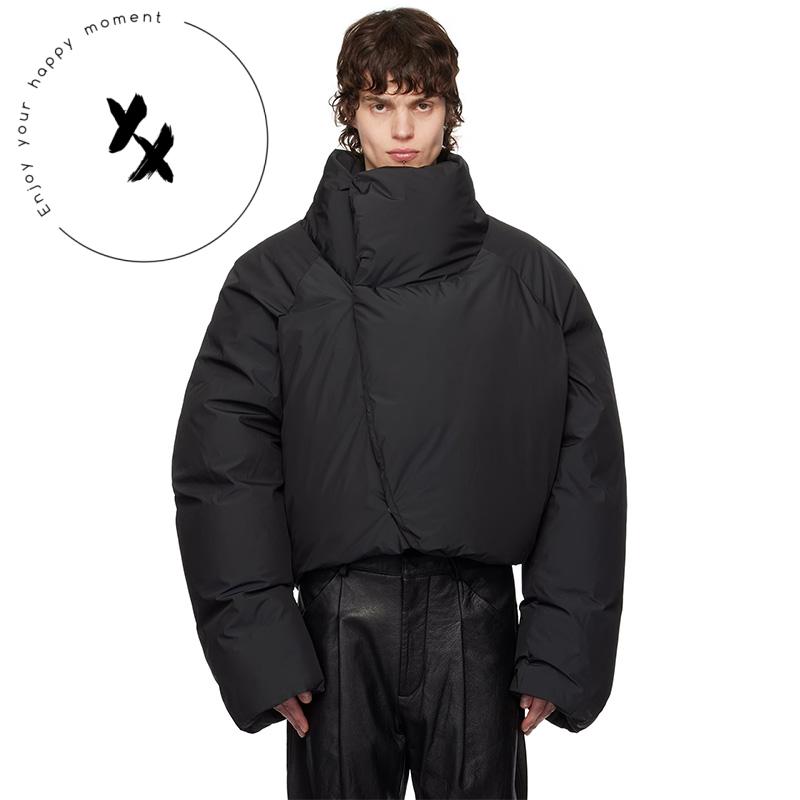 Warm Shiny Bubble Coats Long Sleeve Solid Zipper Pocket Short Puffer Jacket Winter Down Jacket Men