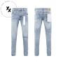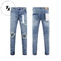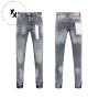 Fashion High Street Brand Men Jeans Distressed Hole Patches Repair Pants Low Rise Skinny Tassel Full Length Denim Jeans